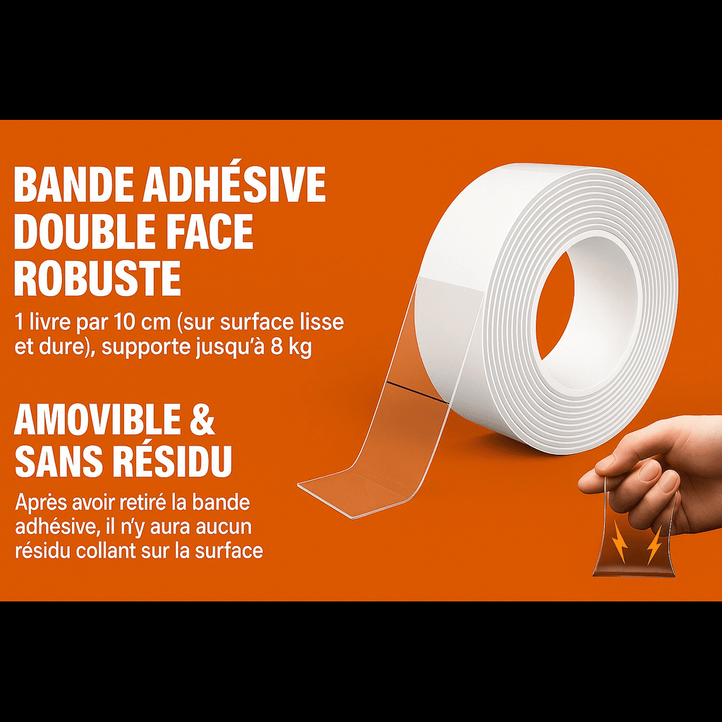 Bande Adhésive Double Face Ultra-Forte - Fixation Jusqu'à 8kg